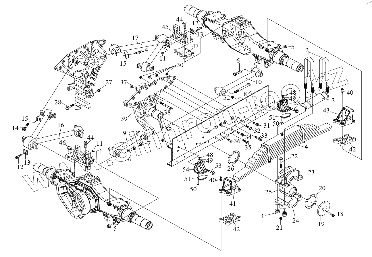 Каталог запасных частей к технике: FAW CA3251 (P66K2L2T1E5Z). Задняя подвеска