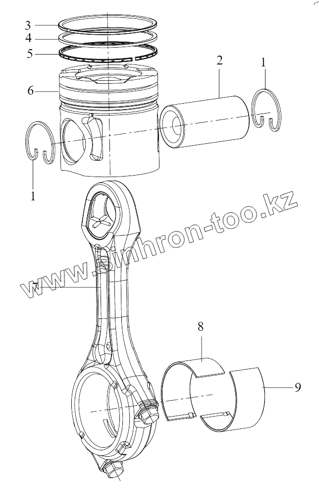 Каталог запасных частей к технике: FAW CA3310 (P66K24T4E5). Поршни и шатуны