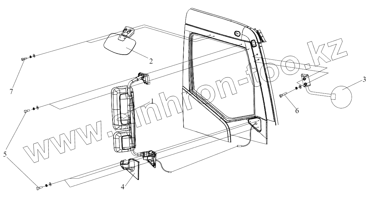 Каталог запасных частей к технике: FAW CA3310 (P66K24T4E5). Правое зеркало заднего вида
