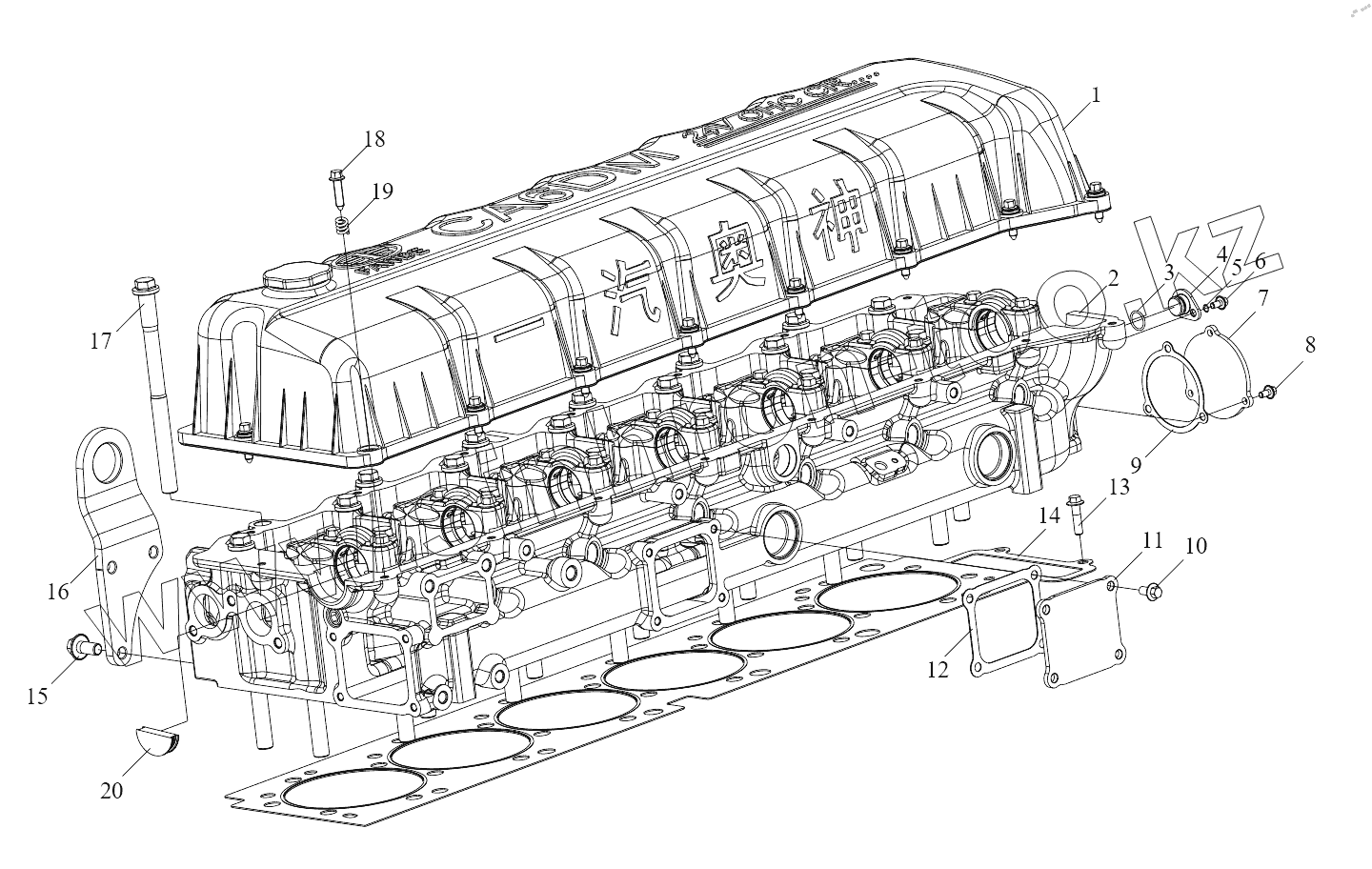 Каталог запасных частей к технике: FAW CA3310 (P66K24T4E5). Составляющие элементы головки блока цилиндров