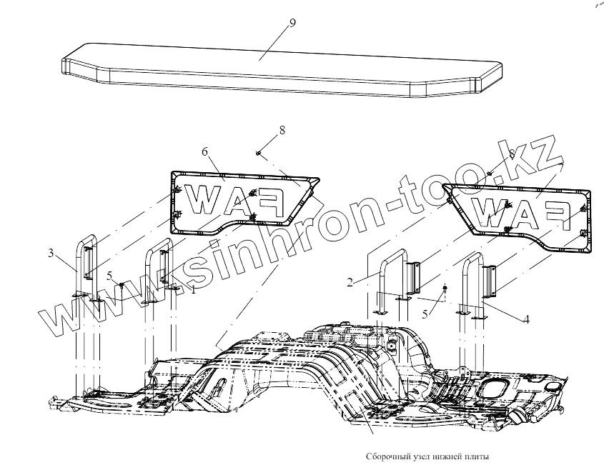 Каталог запасных частей к технике: FAW CA3310 (P66K24T4E5). Составляющие элементы нижнего спального места