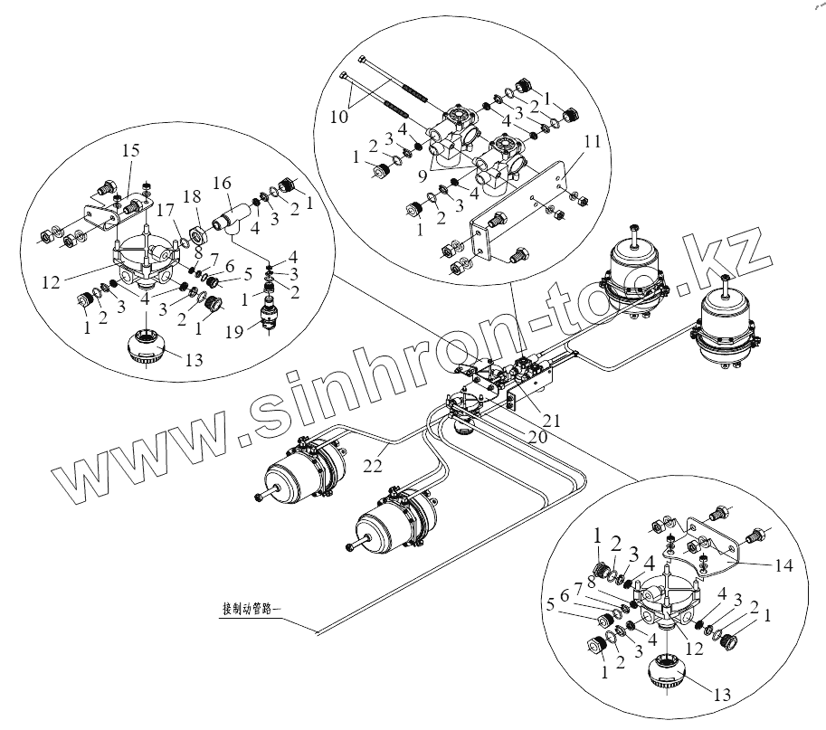 Каталог запасных частей к технике: FAW CA3310 (P66K24T4E5). Тормозные трубопроводы (II)
