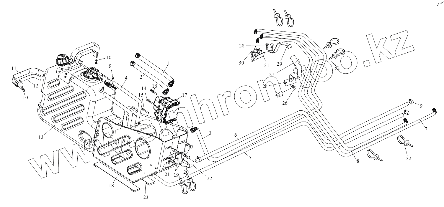 Каталог запасных частей к технике: FAW CA3310 (P66K24T4E5). Трубопроводы мочевины