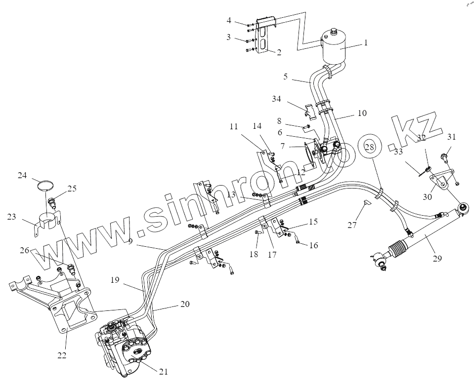 Каталог запасных частей к технике: FAW CA3310 (P66K24T4E5). Трубопроводы рулевого механизма с гидроусилителем