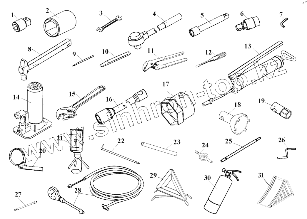 Каталог запасных частей к технике: FAW CA3310 (P66K24T4E5). Возимый комплект инструментов