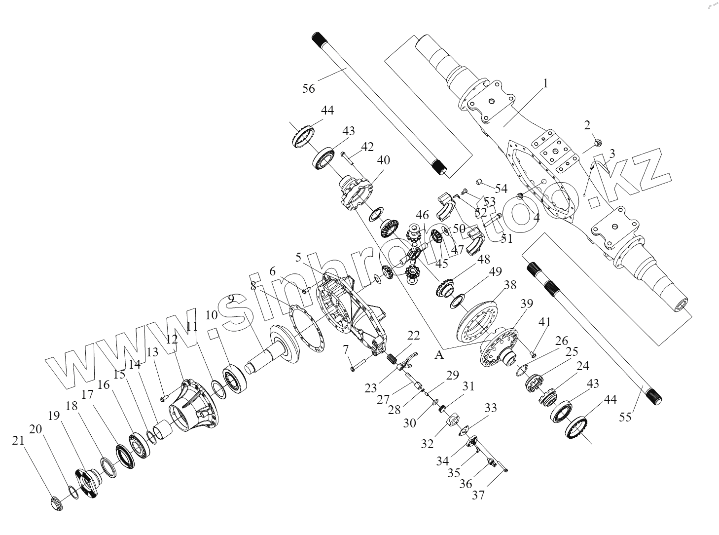 Каталог запасных частей к технике: FAW CA3310 (P66K24T4E5). Задний мост