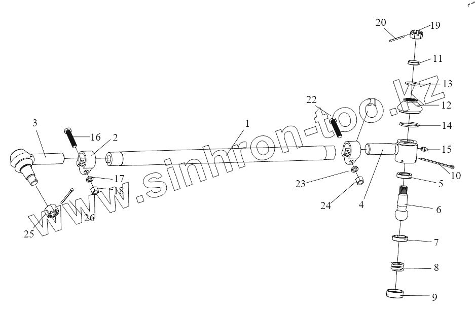 Каталог запасных частей к технике: FAW CA3310 (P66K24T4E5). Задняя продольная рулевая тяга