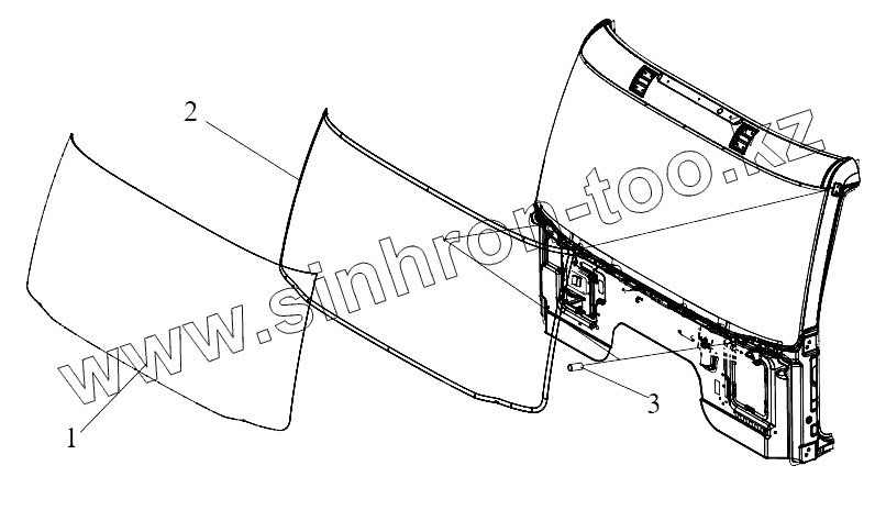 Каталог запасных частей к технике: FAW CA3311. Переднее ветровое стекло