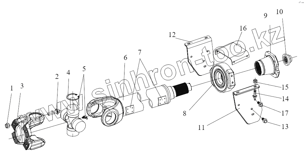 Промежуточный приводной вал среднего моста и поддержка в сборе