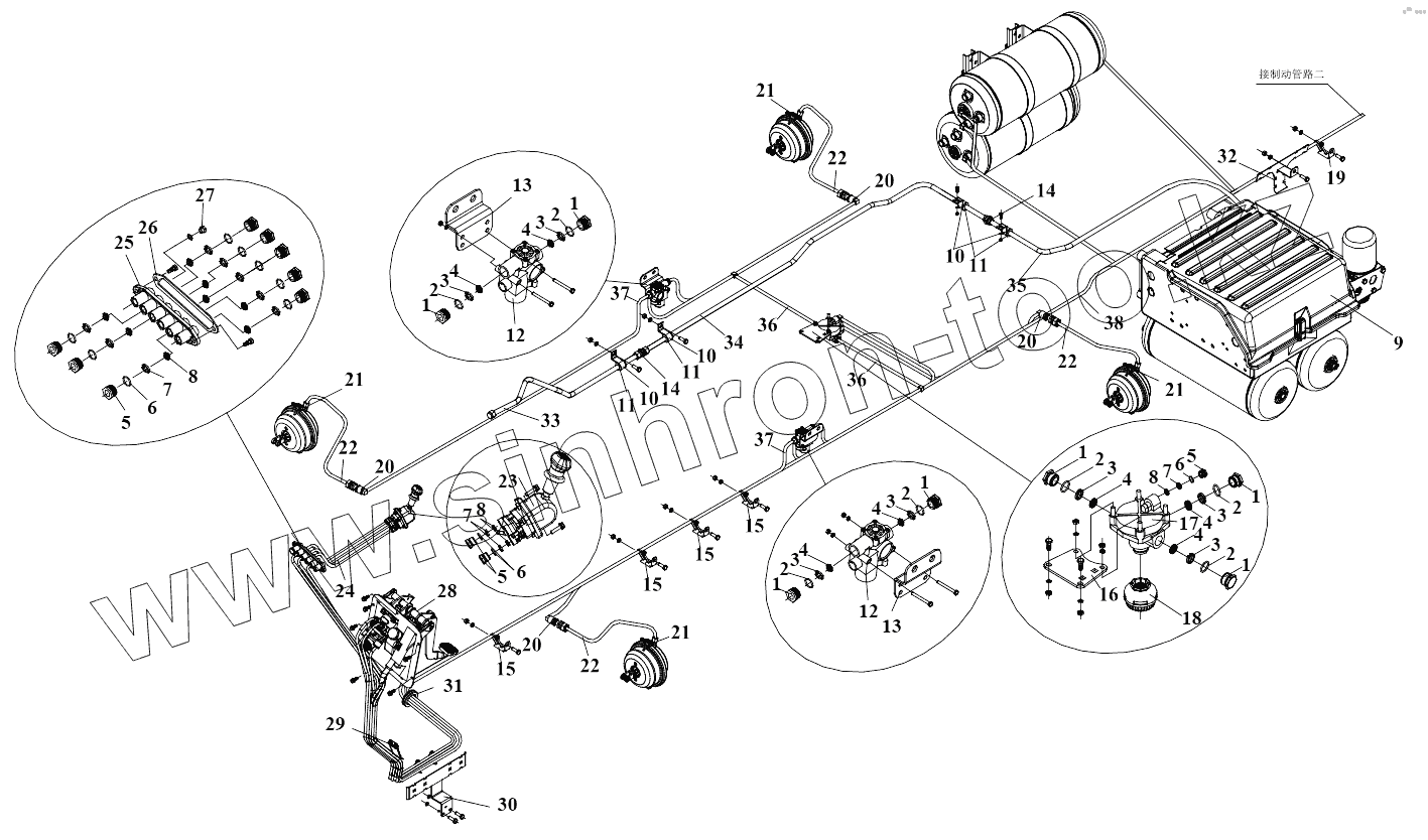 Каталог запасных частей к технике: FAW CA3311. Тормозной трубопровод (1)