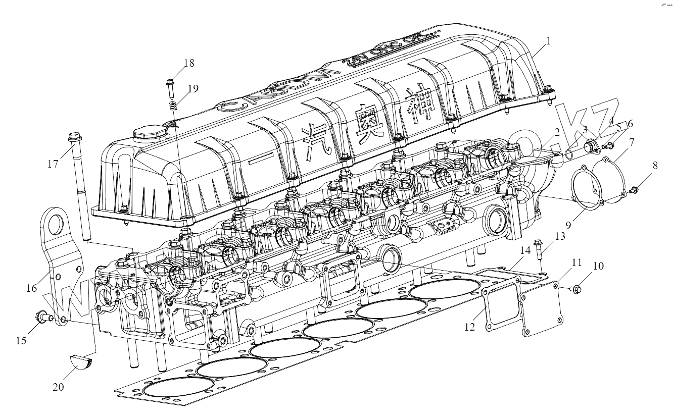 Каталог запасных частей к технике: FAW CA3311. Узел крышки цилиндра