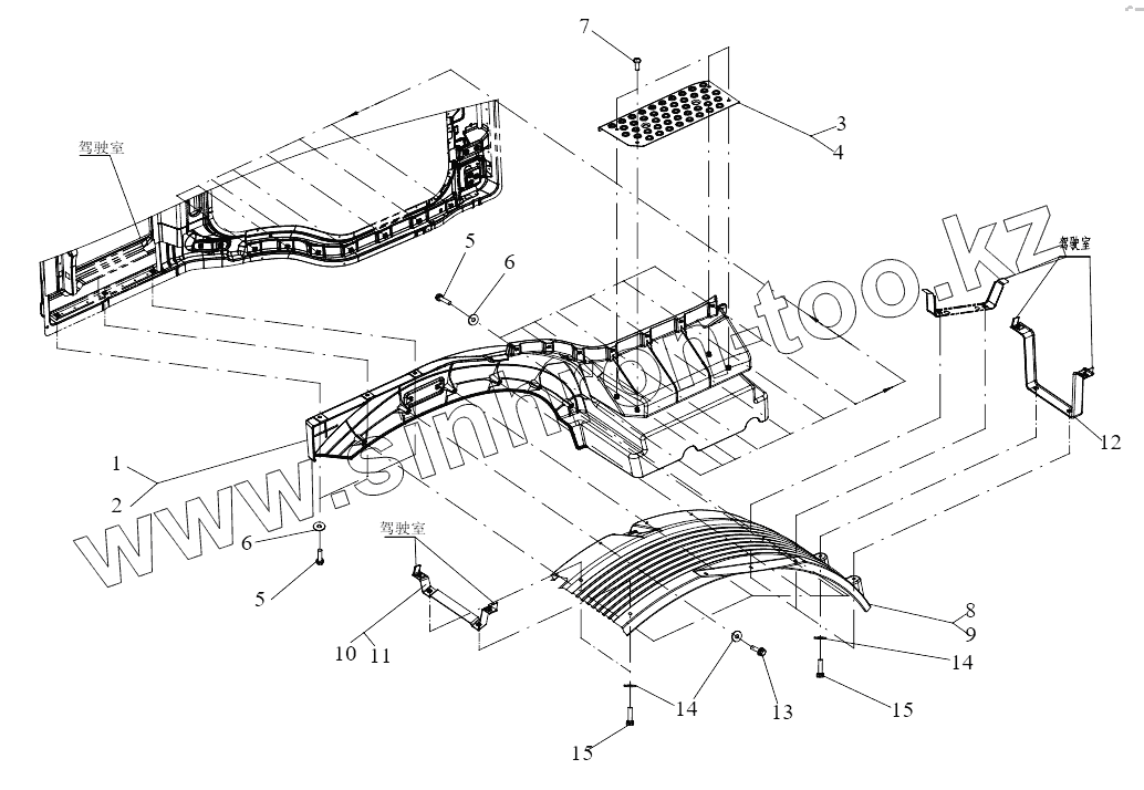 Каталог запасных частей к технике: FAW CA3311. Верхнее крыло, верхнее брызговик и трехступенчатая педаль