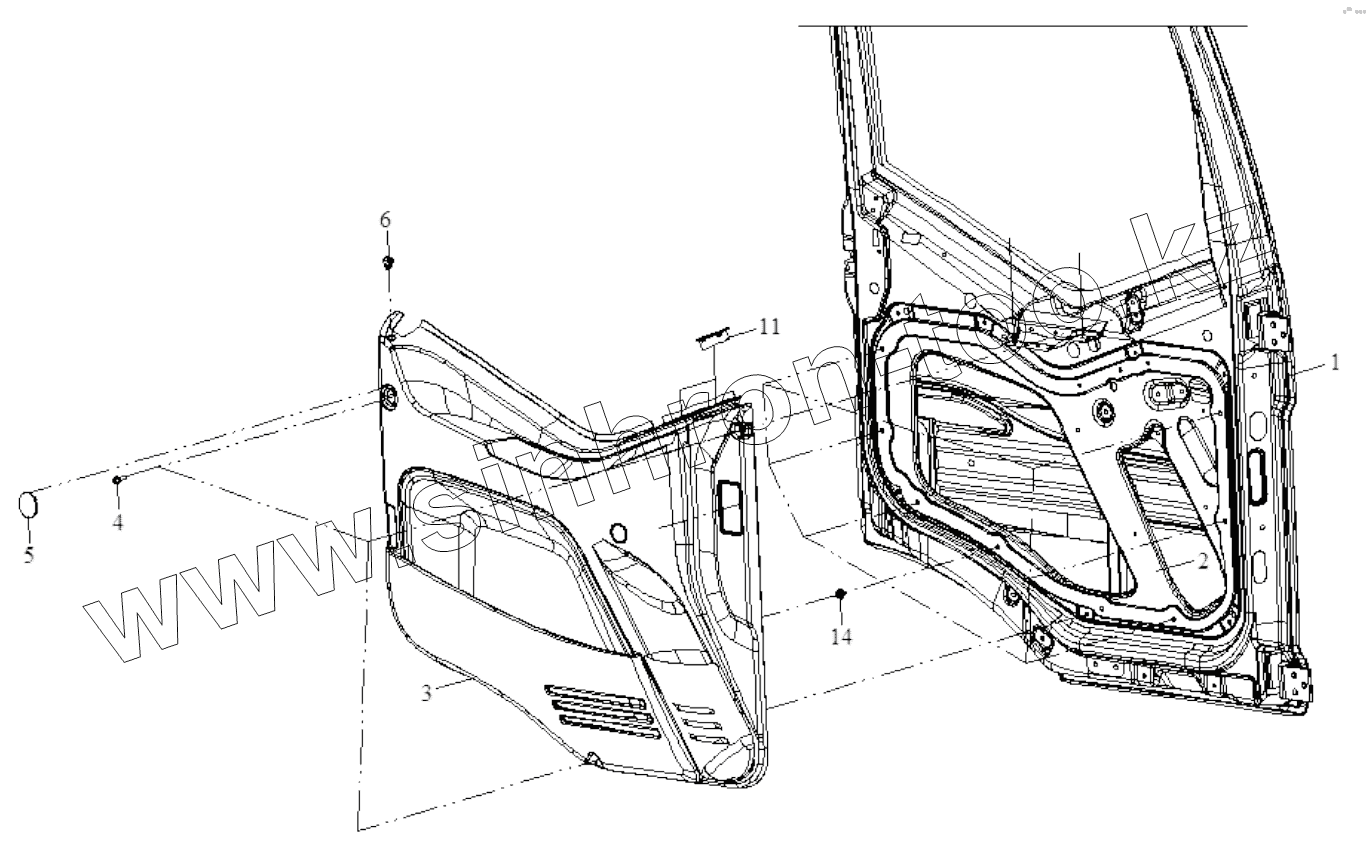 Каталог запасных частей к технике: FAW CA3311. Внутренняя отделка двери автомобиля