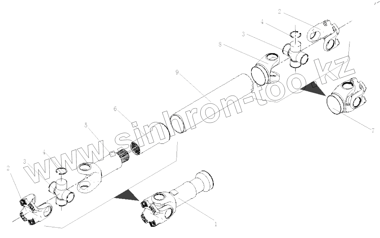 Каталог запасных частей к технике: FAW CA4180 (P77K25E5). КАРДАННЫЙ ВАЛ ЗАДНЕГО МОСТА
