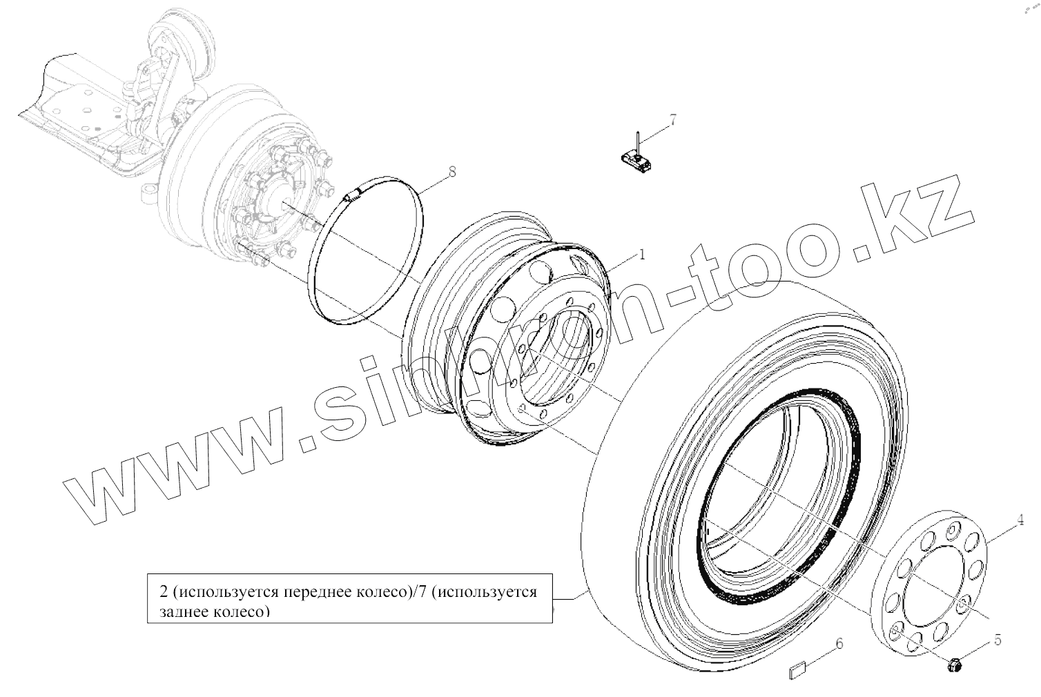 Каталог запасных частей к технике: FAW CA4180 (P77K25E5). КОЛЕСО С ШИНОЙ В СБОРЕ