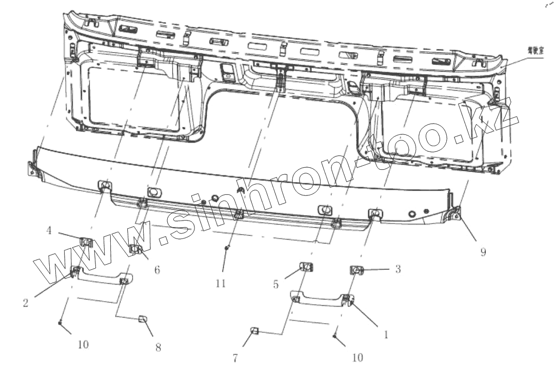 Нижний декоративный лист лобового стекла в сборе