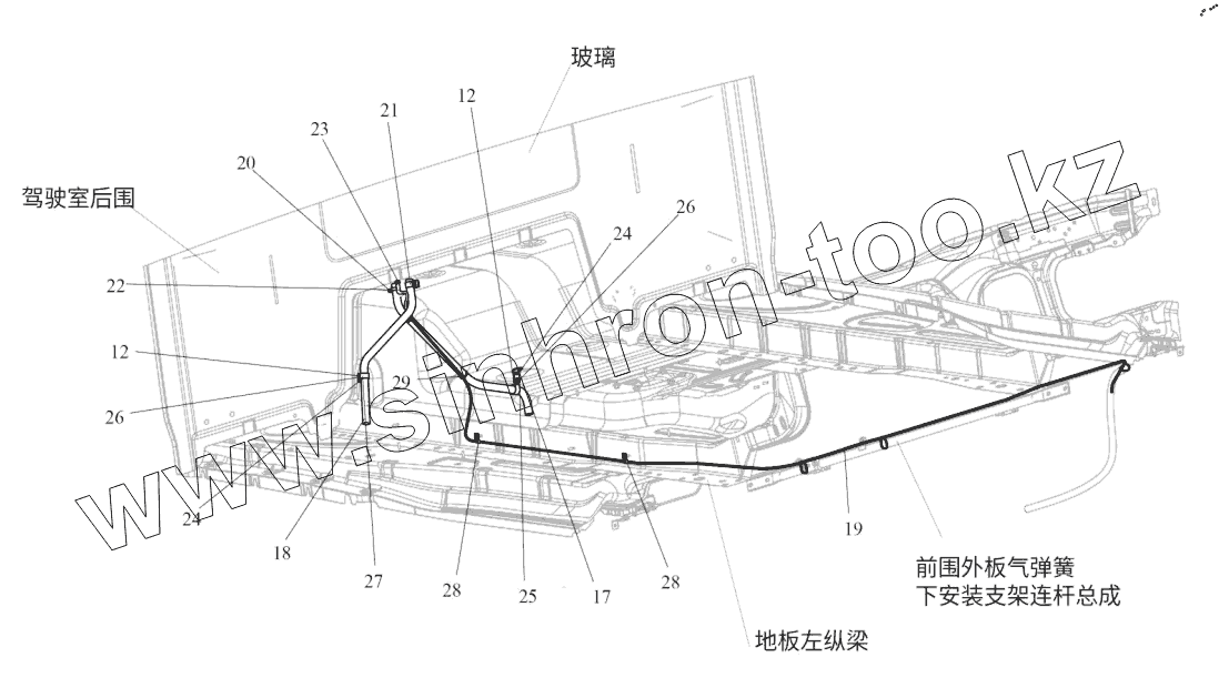 Каталог запасных частей к технике: FAW CA4180 (P77K25E5). СХЕМА ПНЕВМАТИЧЕСКОГО АВТОНОМНОГО ОТОПИТЕЛЯ (КАБИНЫ)