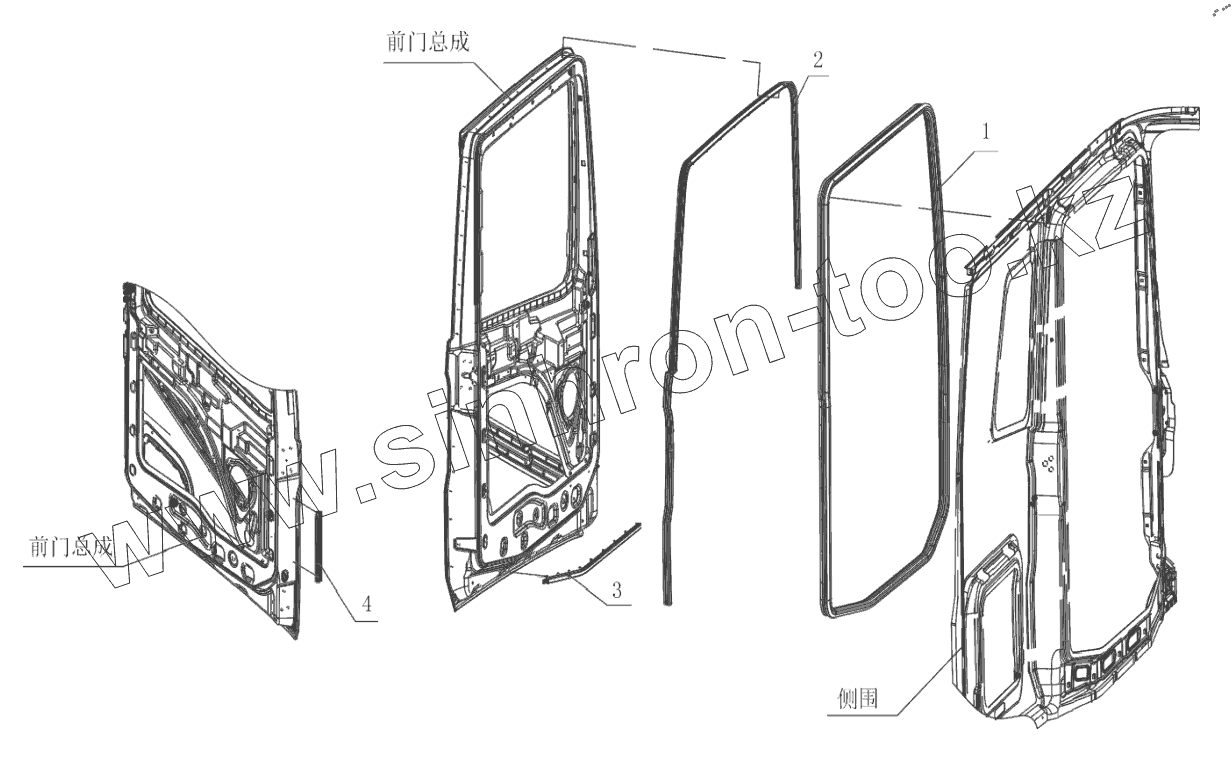 Каталог запасных частей к технике: FAW CA4180 (P77K25E5). СХЕМА СИСТЕМЫ УПЛОТНИТЕЛЬНЫХ ПОЛОС ПЕРЕДНЕЙ ДВЕРИ