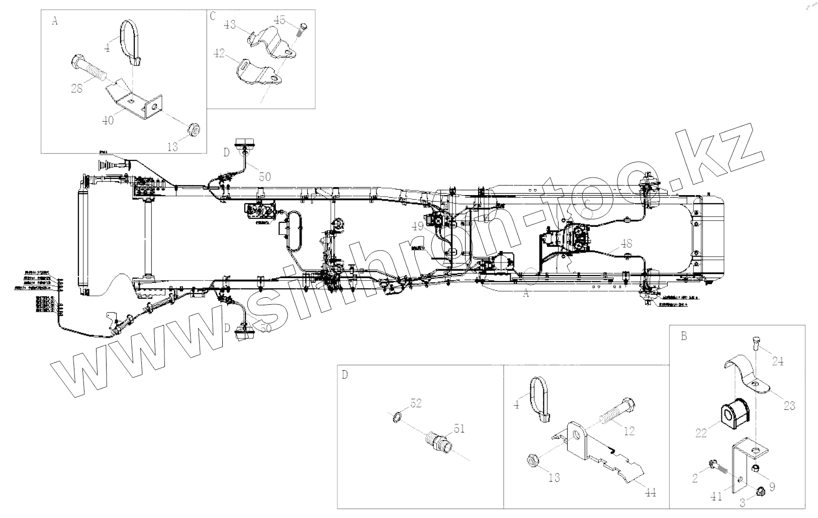 Каталог запасных частей к технике: FAW CA4180 (P77K25E5). СХЕМА ТОРМОЗНОГО ТРУБОПРОВОДА