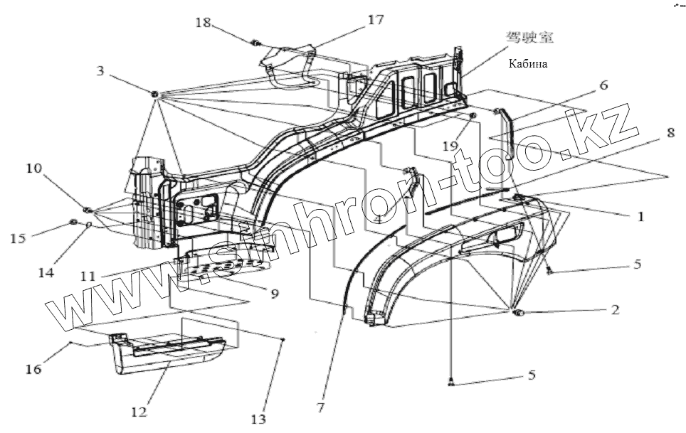 Каталог запасных частей к технике: FAW CA-1083. Крыльевая панель и педаль