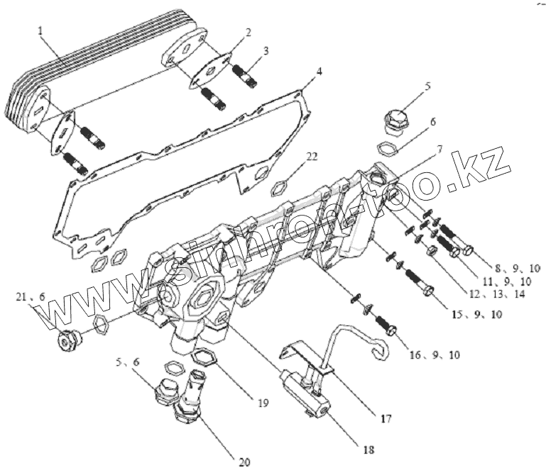 Каталог запасных частей к технике: FAW CA-1083. Масляный охладитель