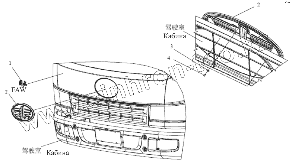 Каталог запасных частей к технике: FAW CA-1083. Передний знак и знак (JIEFANG)