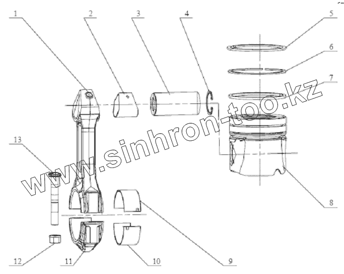 Каталог запасных частей к технике: FAW CA-1083. Поршень и шатун