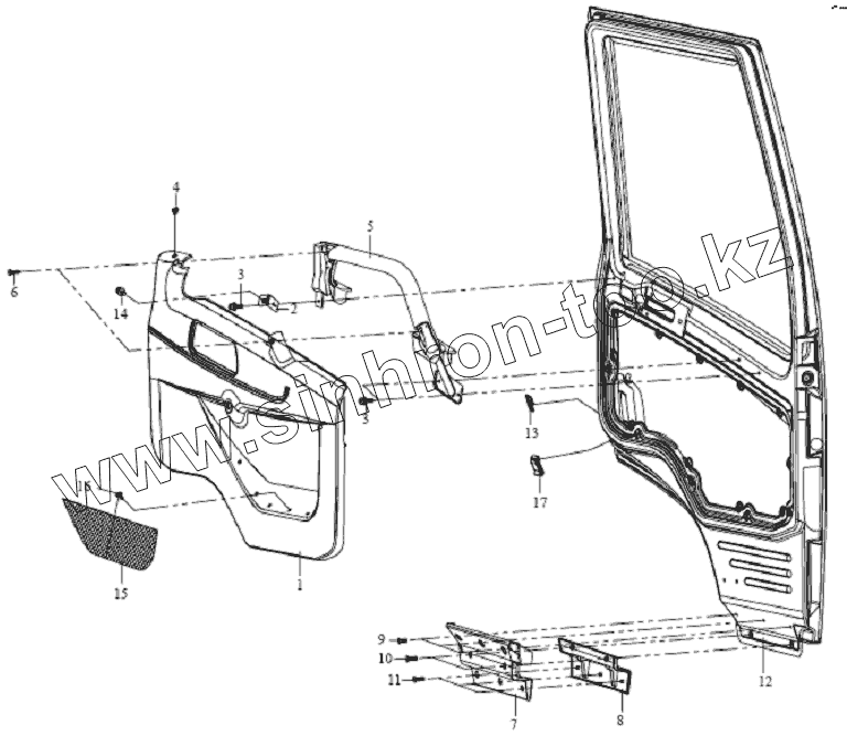 Каталог запасных частей к технике: FAW CA-1083. Внутренняя отделка двери
