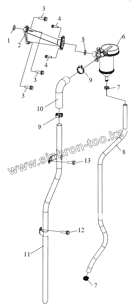 Возвратный маслопровод между масляным картером и воздухоотделителем