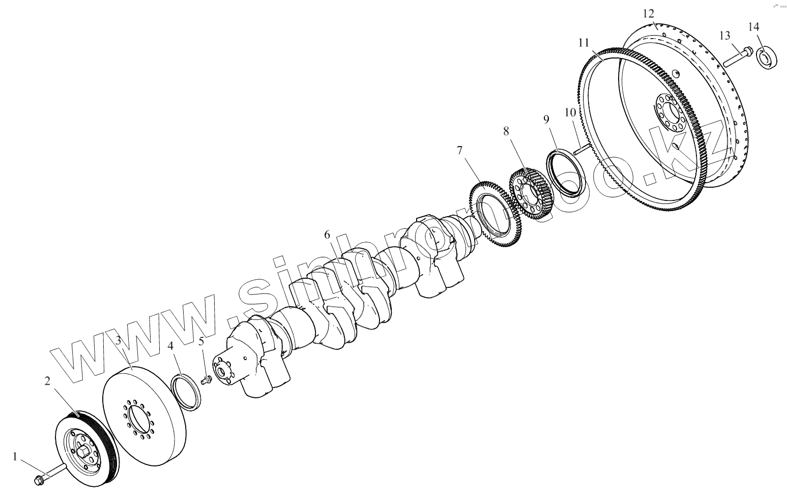 Каталог запасных частей к технике: FAW CA-3250-P66K2L1BT1E4Z. Коленчатый вал, шкив и маховик
