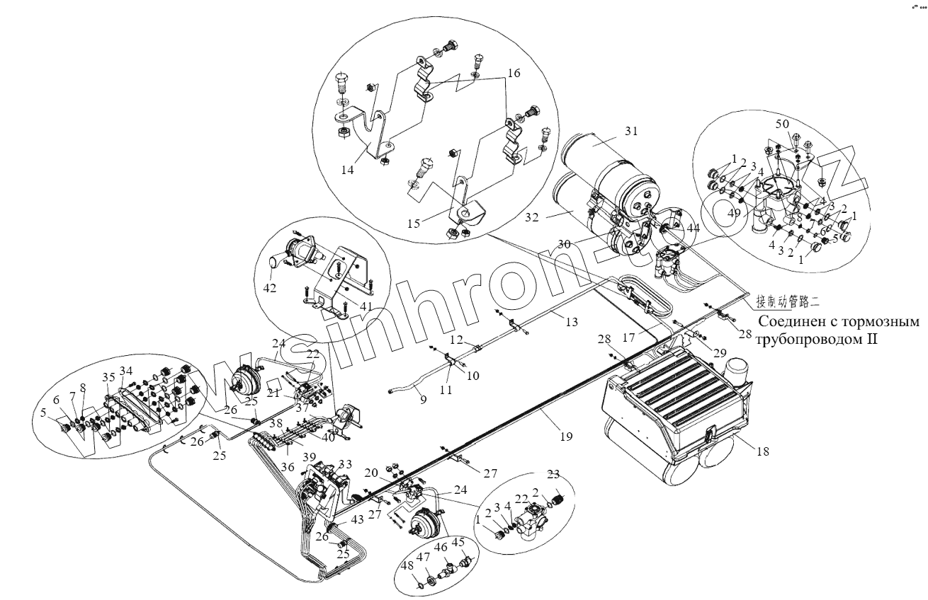 Каталог запасных частей к технике: FAW CA-3250-P66K2L1BT1E4Z. Тормозные трубопроводы I