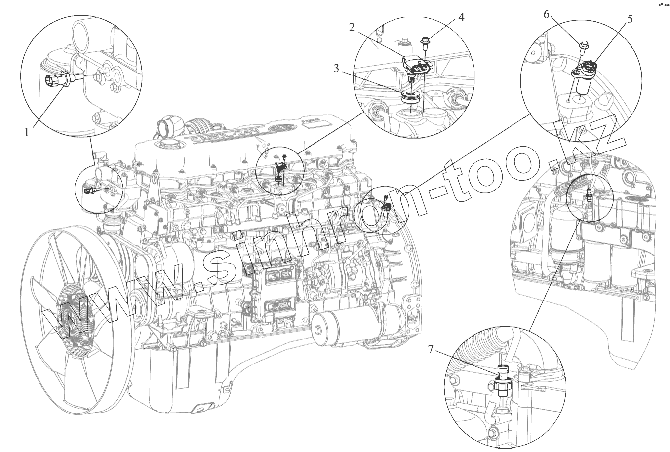 Каталог запасных частей к технике: FAW CA-3250-P66K2L2BT1E4Z. Датчики электронной системы управления