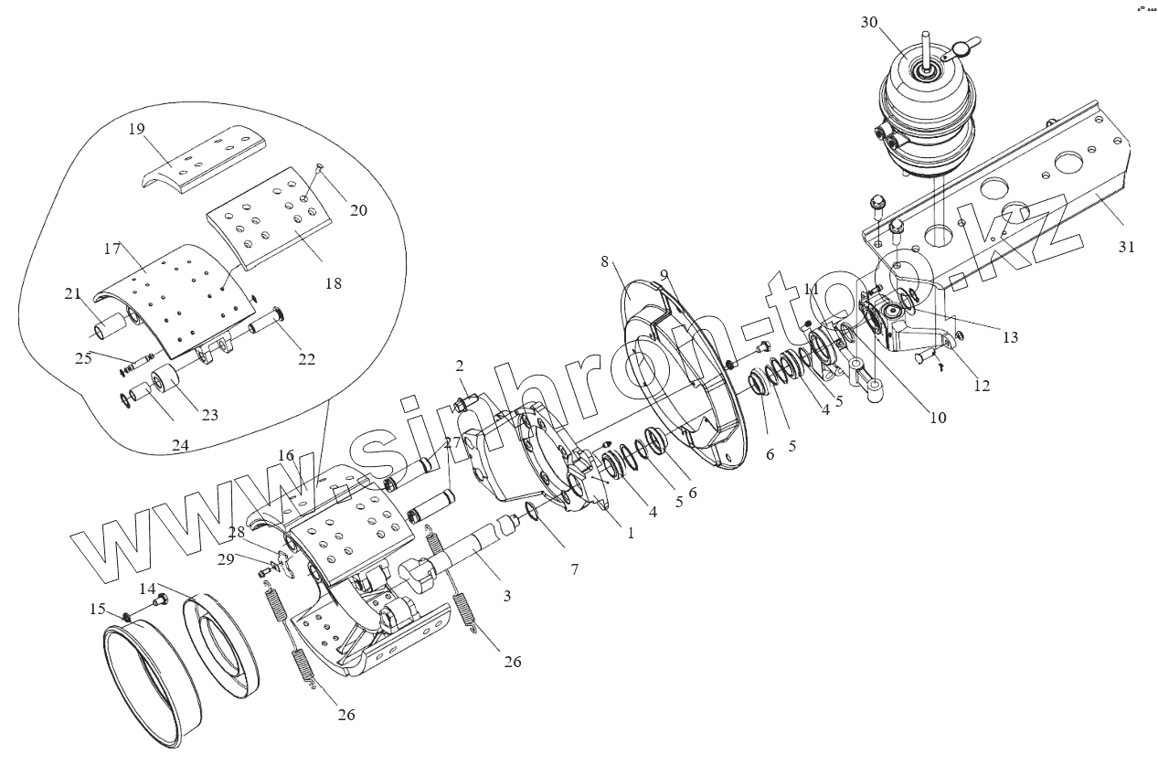 | 31 | 3502126А483 | Опорная плита - пружинный тормозной цилиндр |