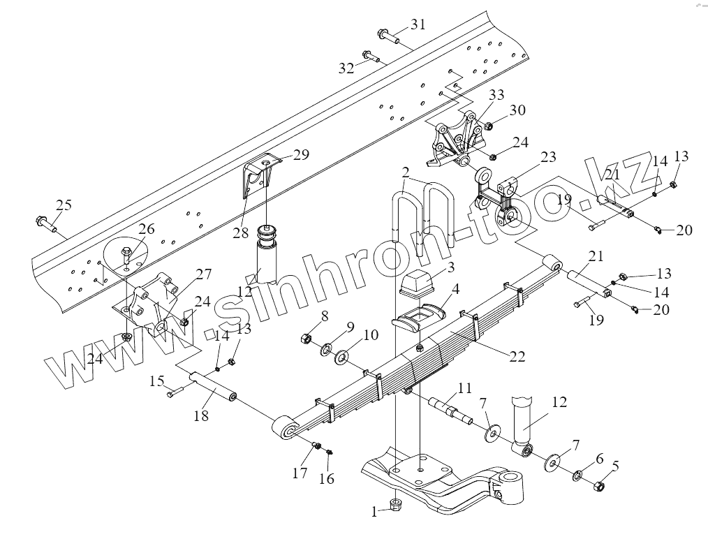 | 33 | 2902450-71В/С | Задний кронштейн в сборе передней рессоры |