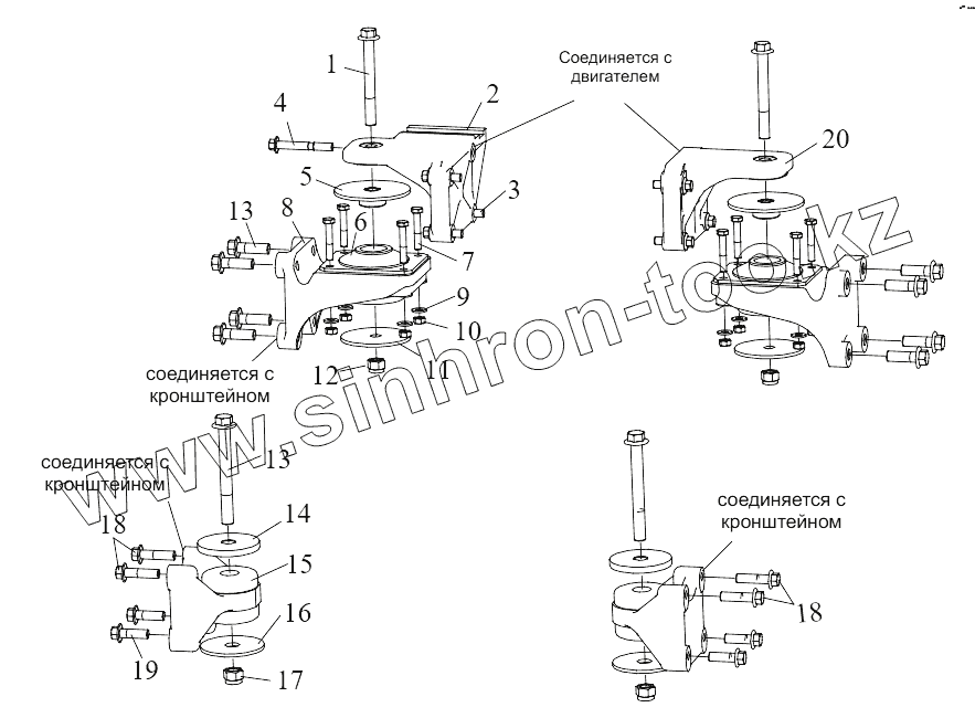 Каталог запасных частей к технике: FAW CA 3250 P66K2T1E5. Подвеска двигателя