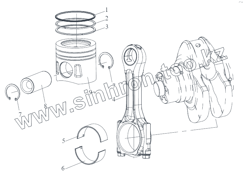 Каталог запасных частей к технике: FAW CA 3250 P66K2T1E5. Поршень и шатун