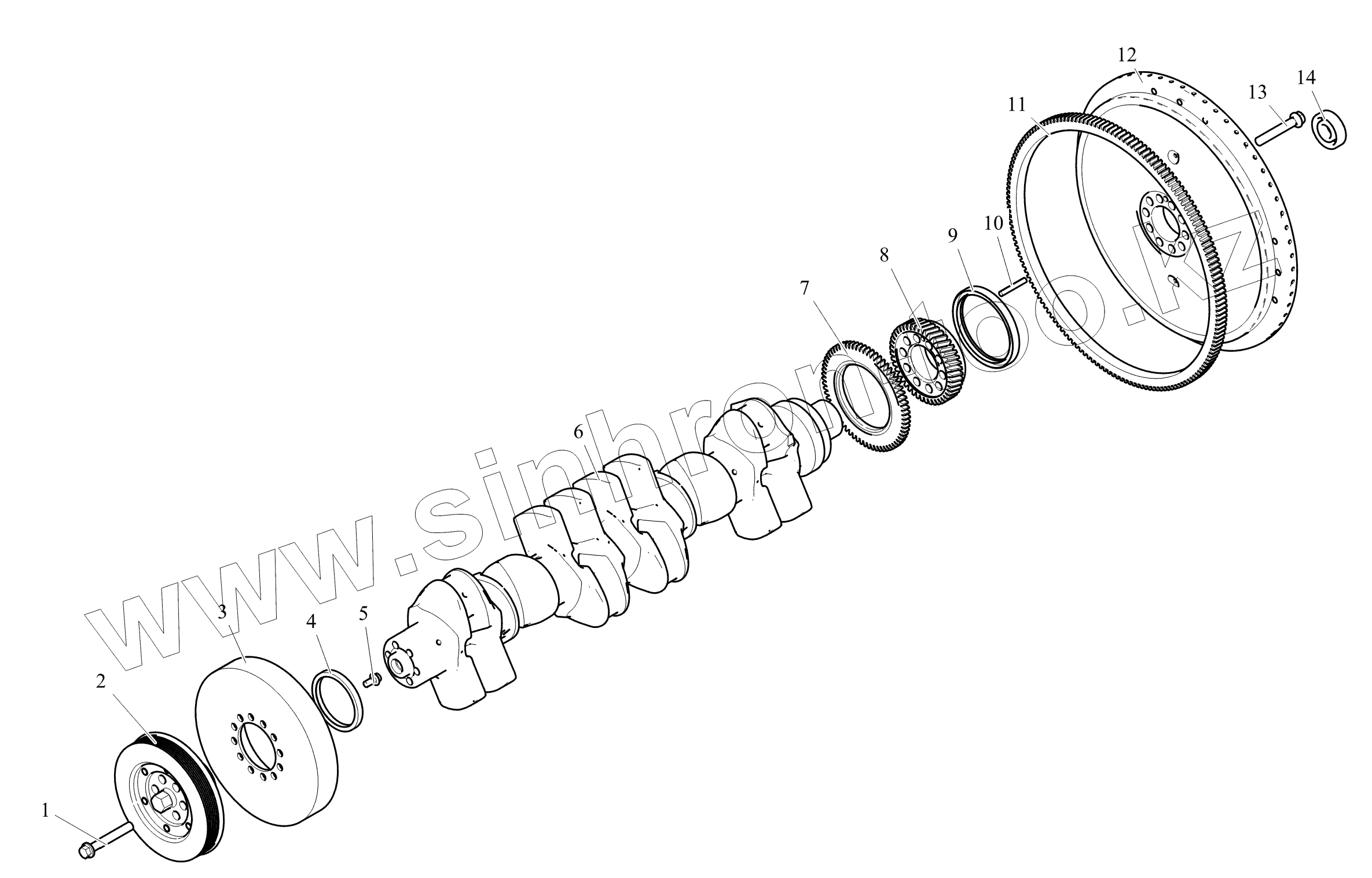 Каталог запасных частей к технике: FAW CA 3250 серии J6. Коленчатый вал, шкив и маховик