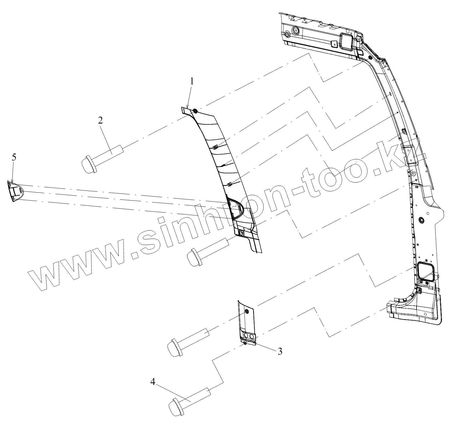 Каталог запасных частей к технике: FAW CA 3250 серии J6. Обшивки передних стоек