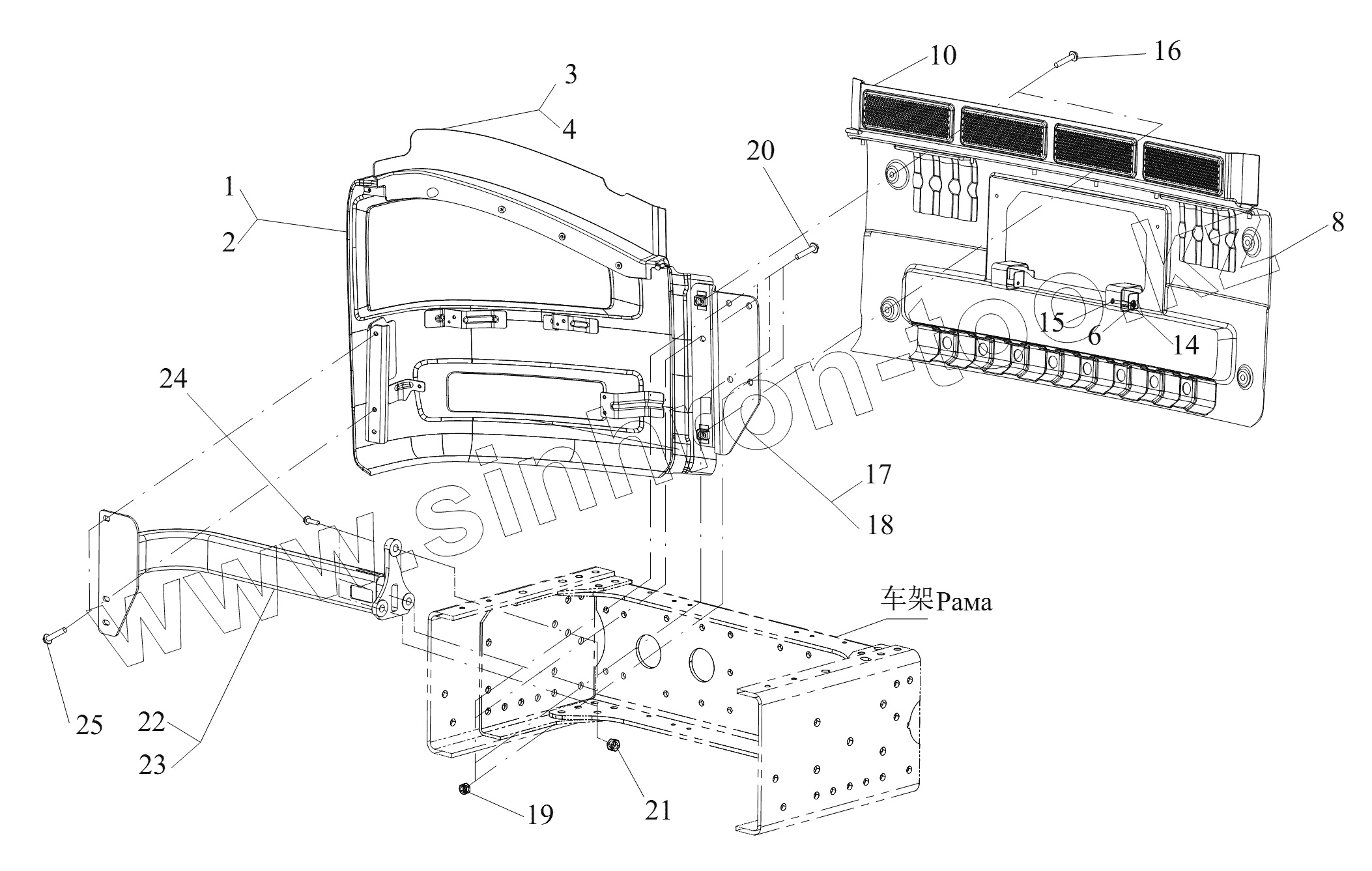 Каталог запасных частей к технике: FAW CA 3250 серии J6. Передний бампер (II)