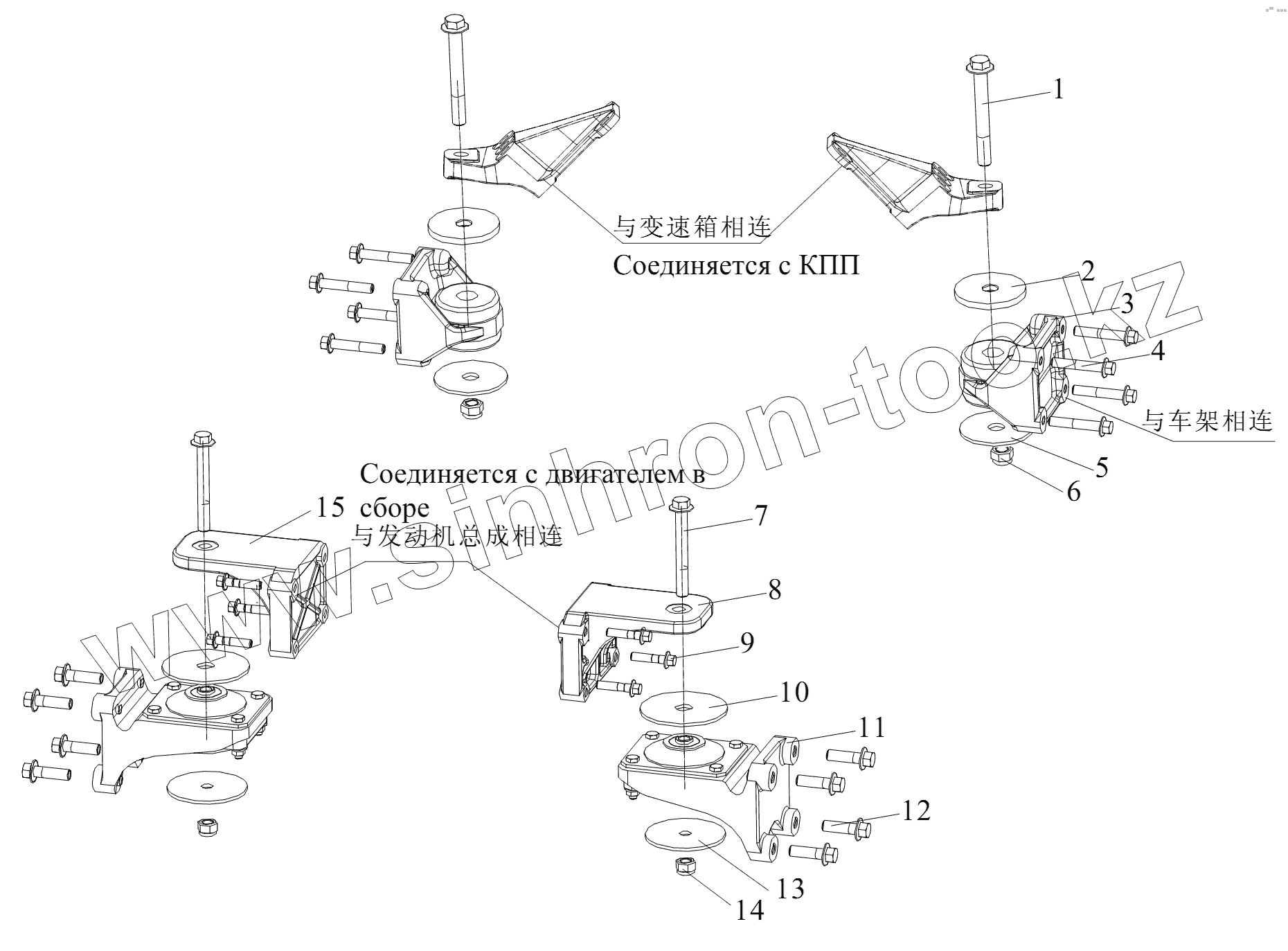 Каталог запасных частей к технике: FAW CA 3250 серии J6. Подвеска двигателя