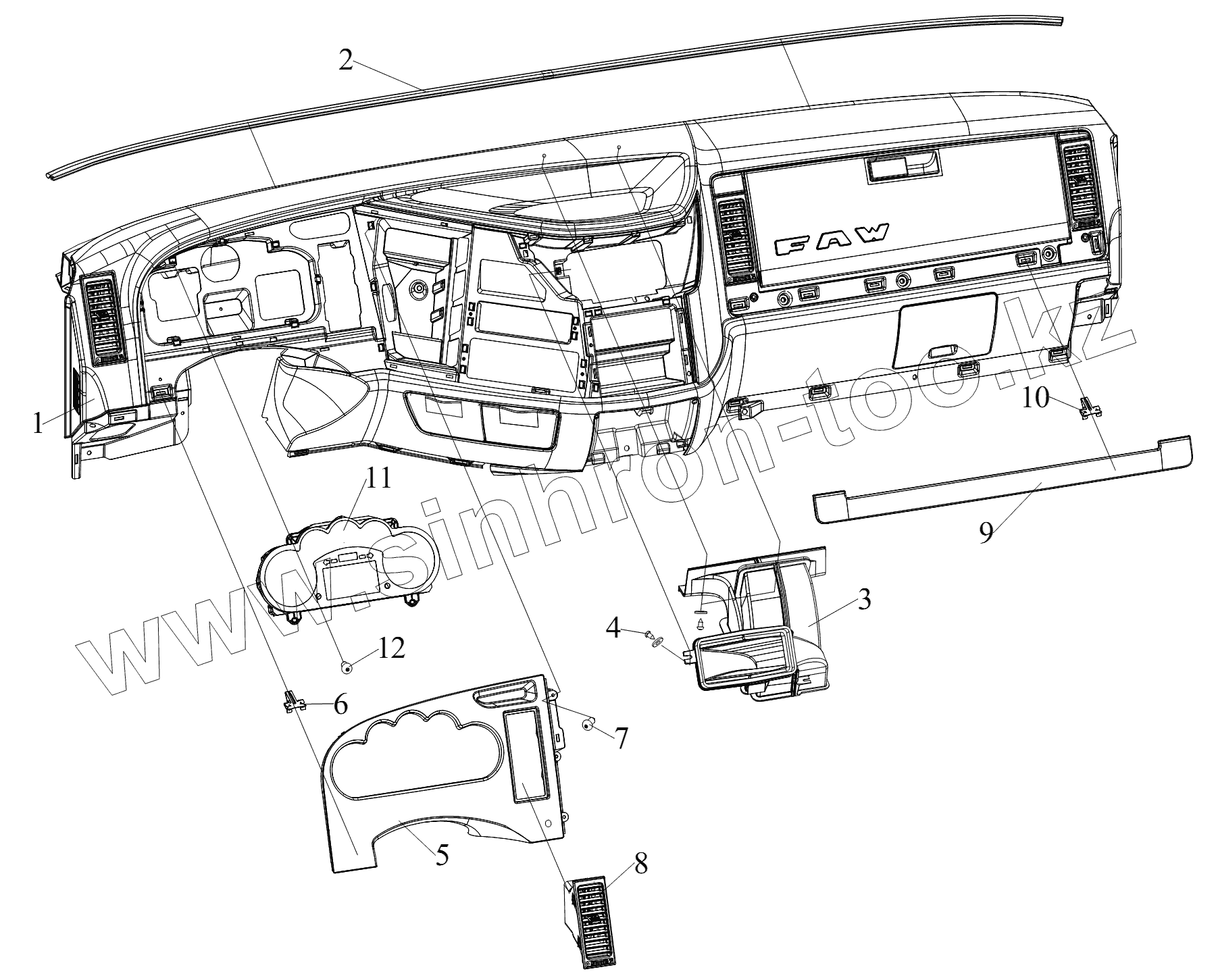 Каталог запасных частей к технике: FAW CA 3250 серии J6. Приборная панель (III)