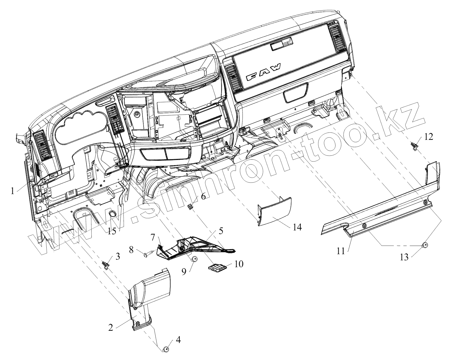 Каталог запасных частей к технике: FAW CA 3250 серии J6. Приборная панель (VI)