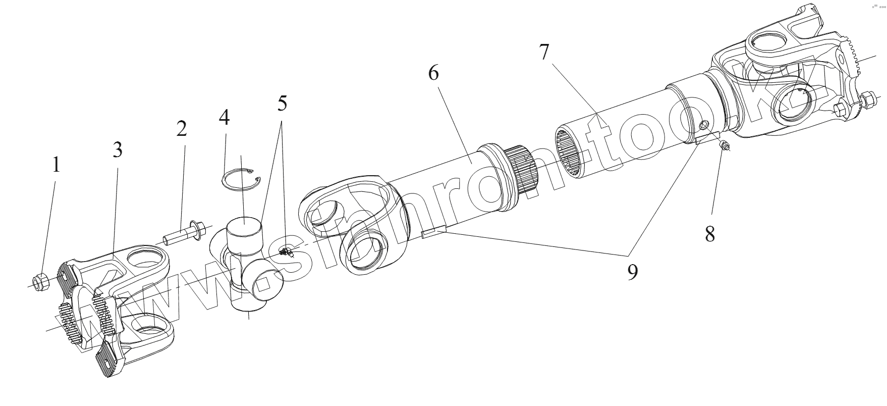 Вилка шлицевого вала и универсальный кардан в сборе