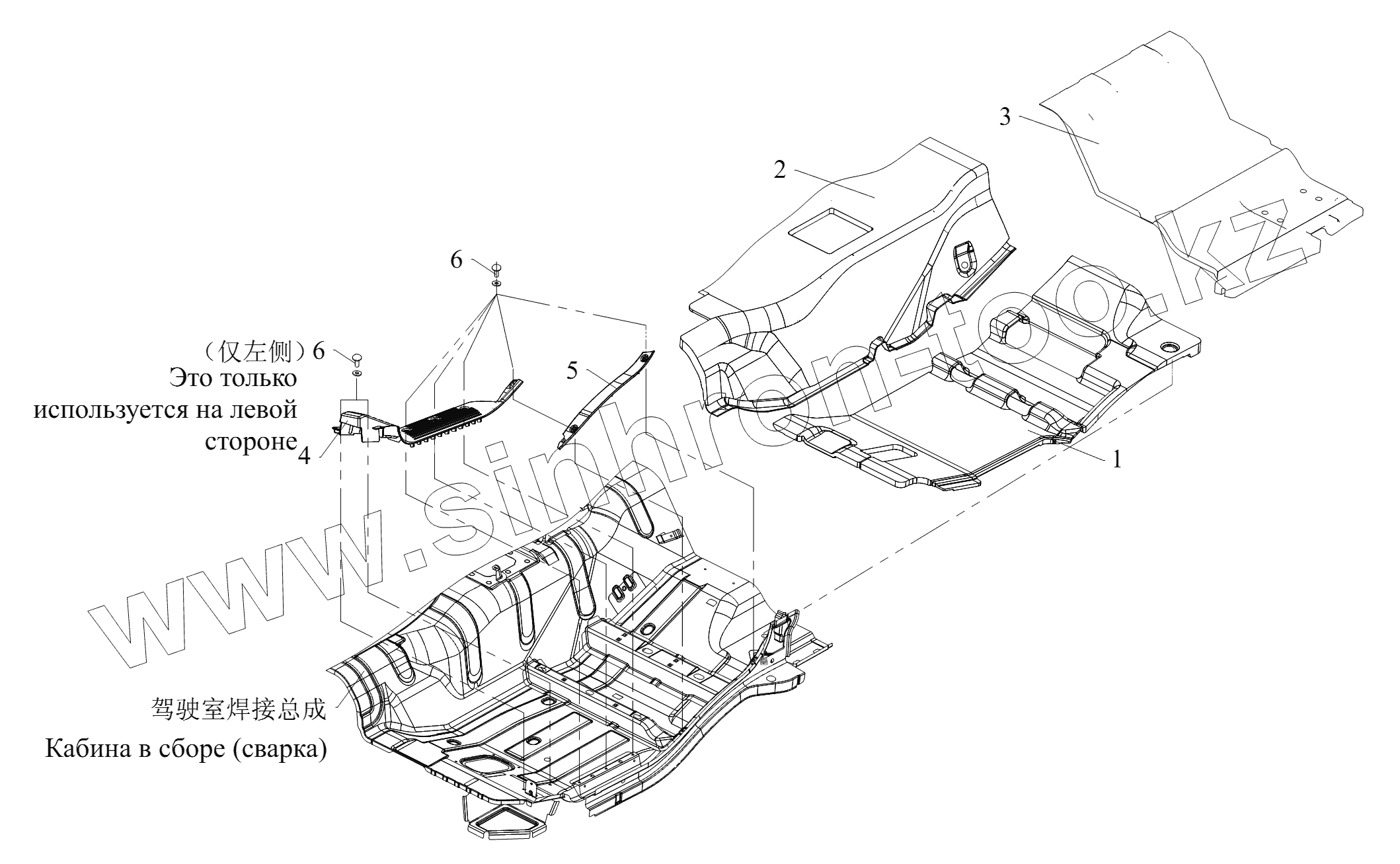 Каталог запасных частей к технике: FAW CA 3250 серии J6. Составляющие элементы ковриков
