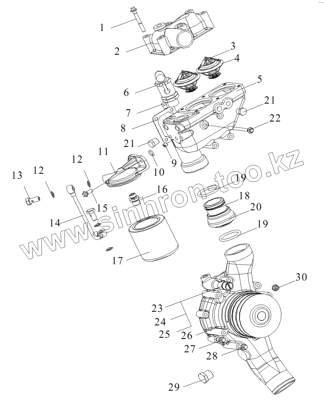 Каталог запасных частей к технике: FAW CA 3250 серии J6. Термостат, водяной насос