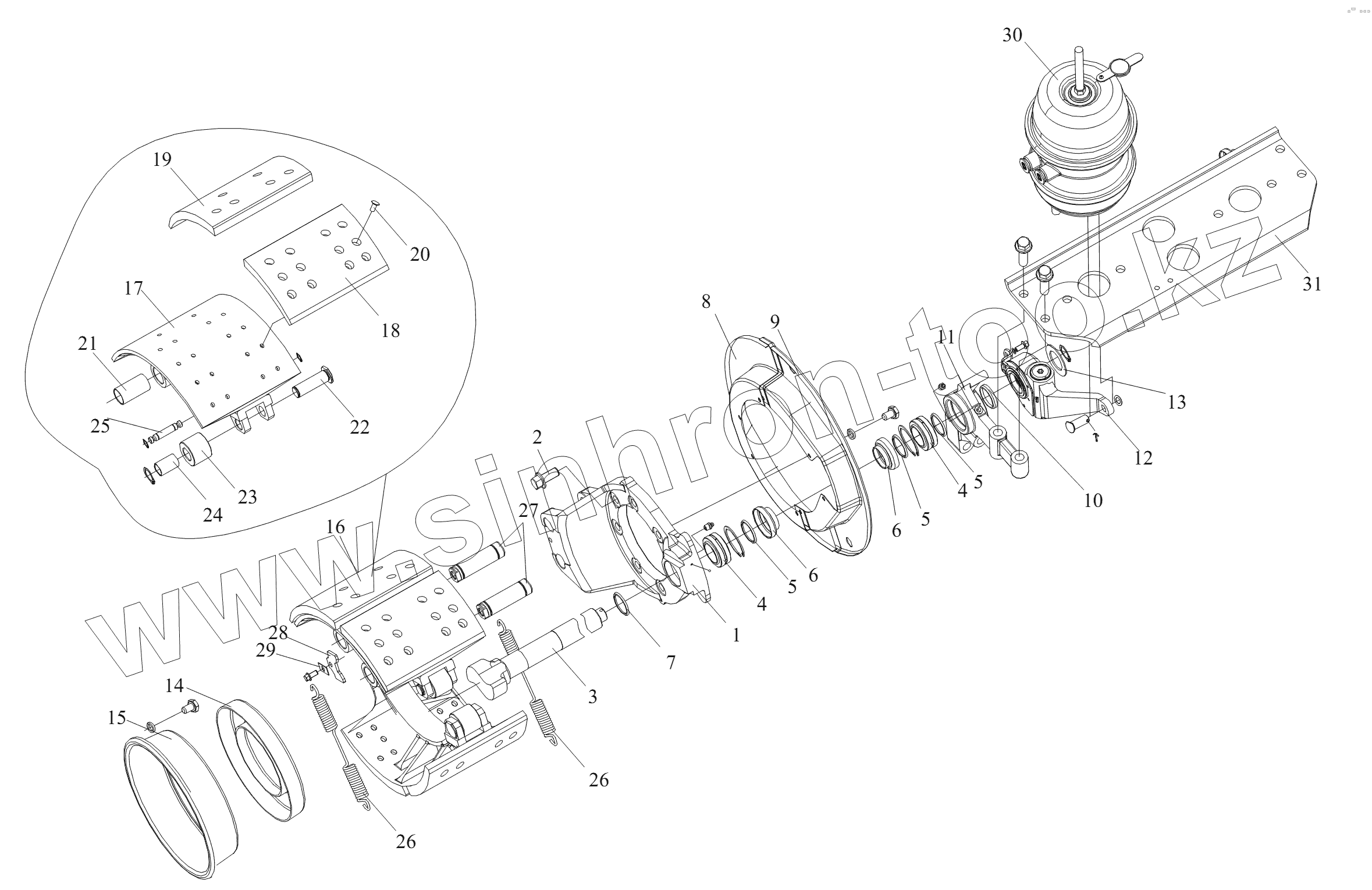 Каталог запасных частей к технике: FAW CA 3250 серии J6. Тормозные механизмы задних колес