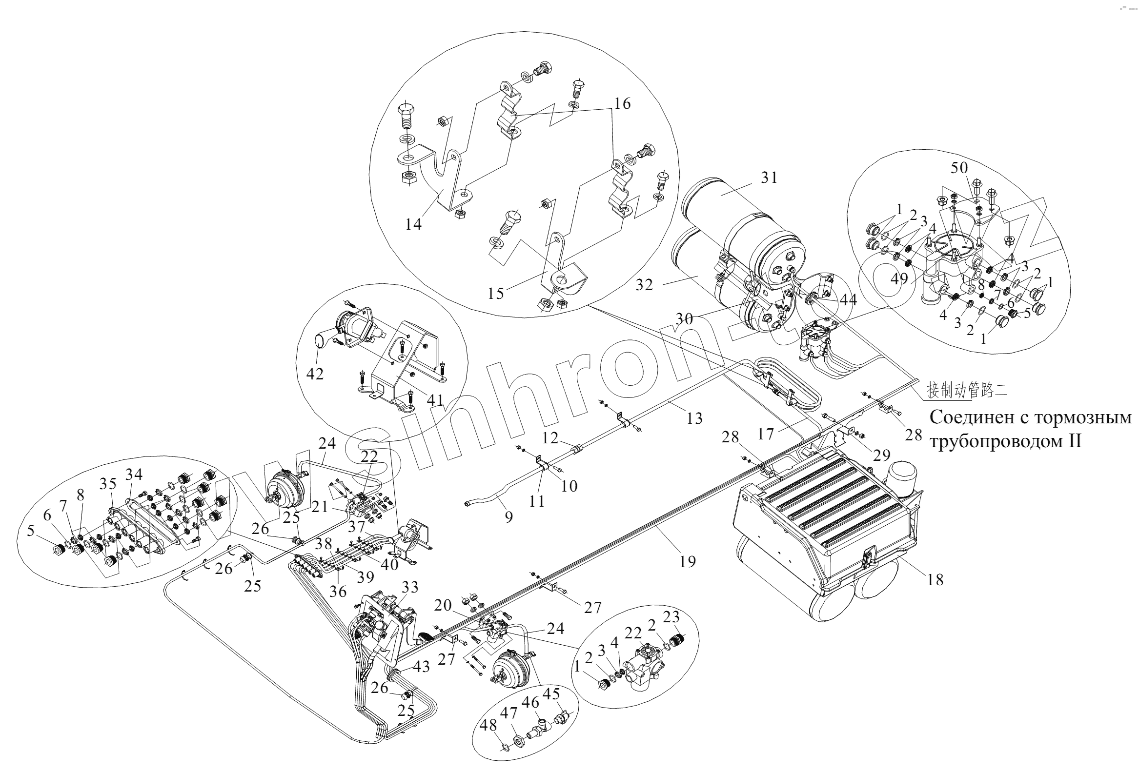 Каталог запасных частей к технике: FAW CA 3250 серии J6. Тормозные трубопроводы I