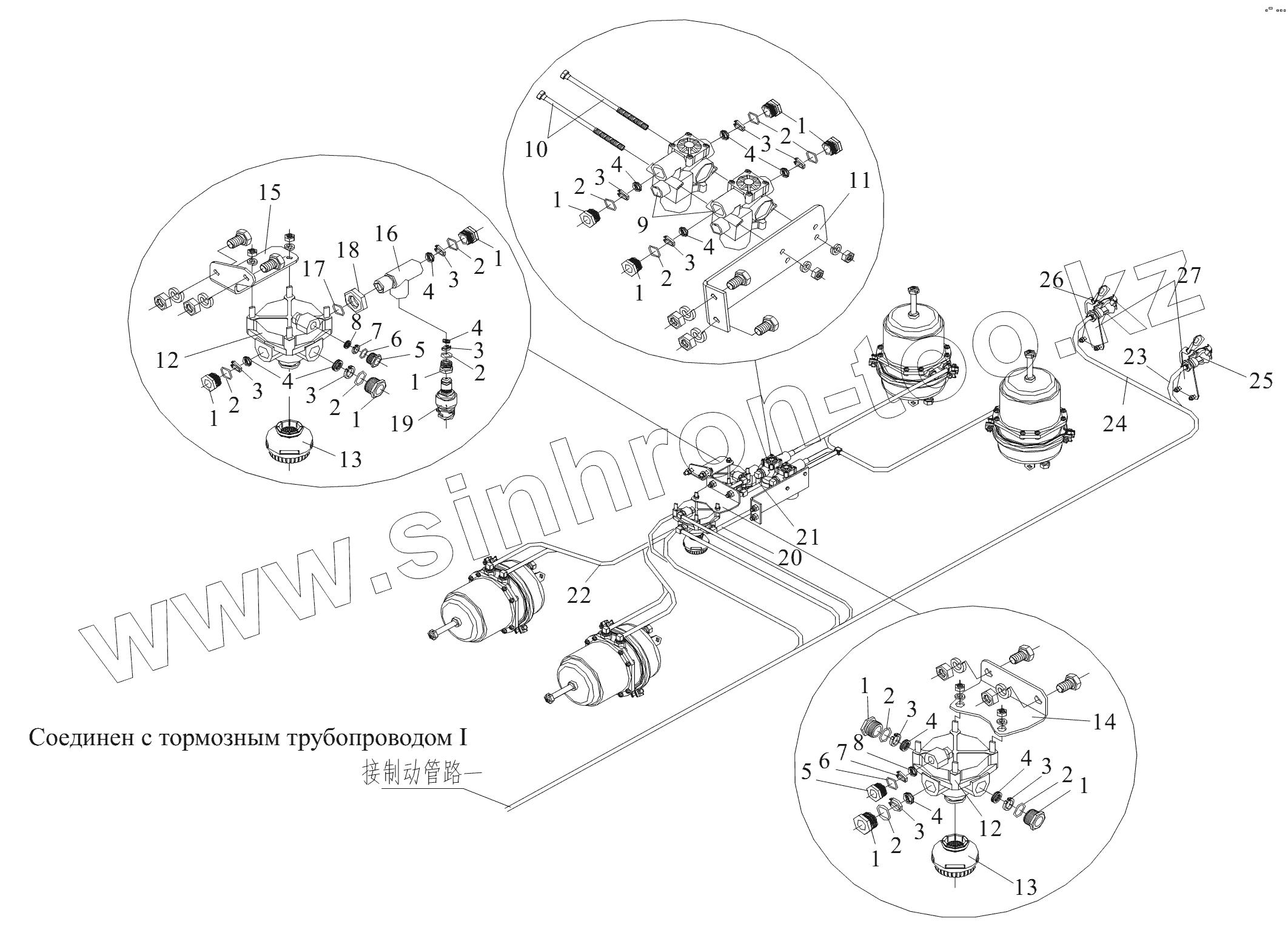 Каталог запасных частей к технике: FAW CA 3250 серии J6. Тормозные трубопроводы II