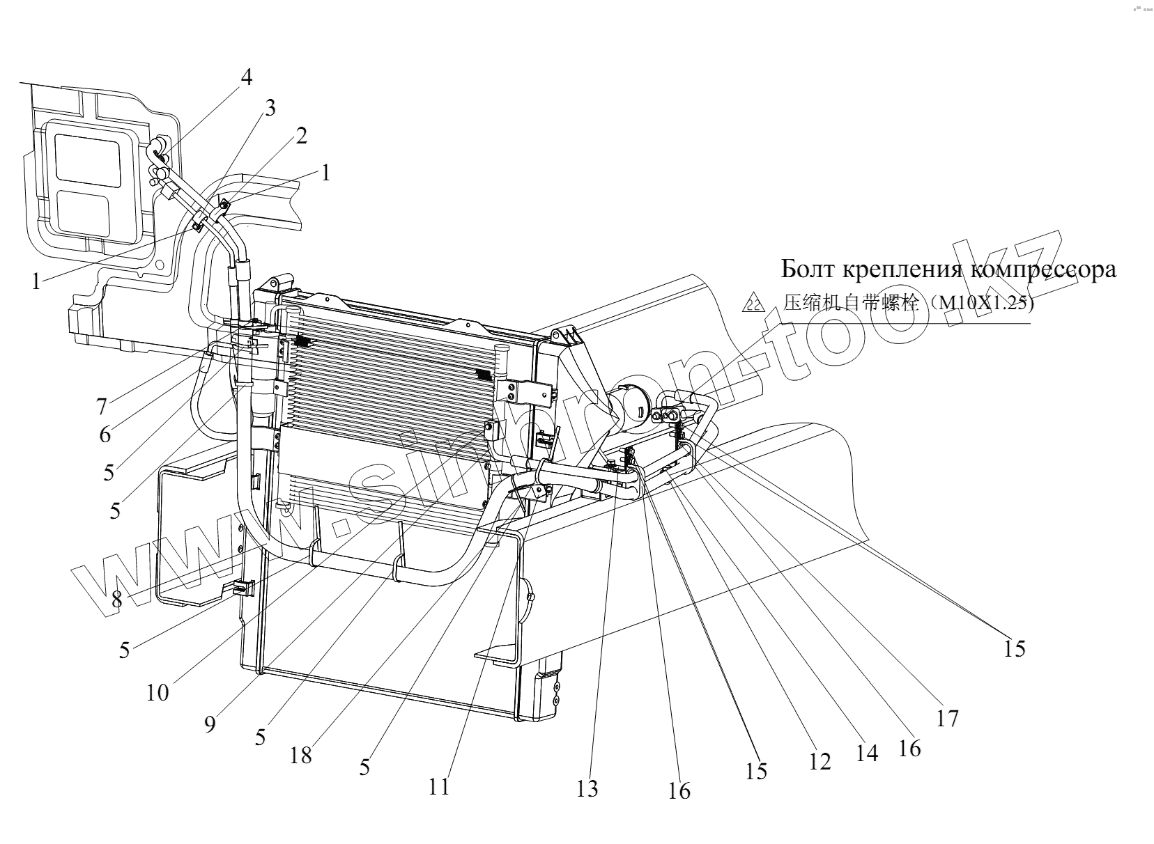 Каталог запасных частей к технике: FAW CA 3250 серии J6. Трубопроводы подачи жидкого фреона