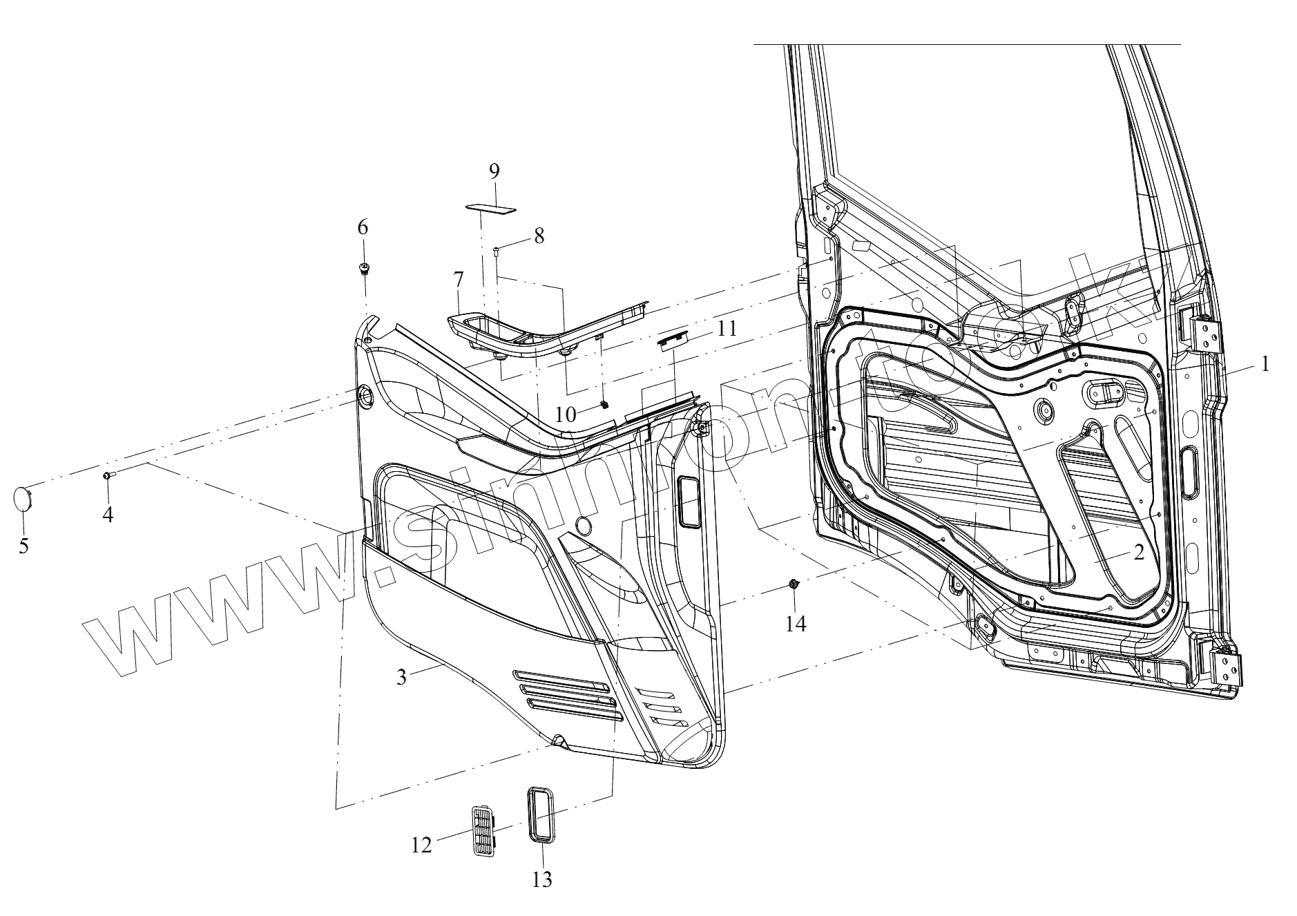 Каталог запасных частей к технике: FAW CA 3250 серии J6. Внутренние обшивки дверей